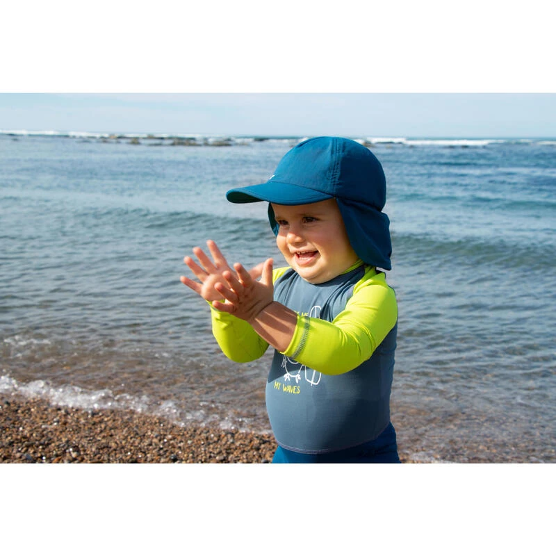 Conçu pour protéger la tête et le cou des bébés du soleil pendant leurs activités aquatiques. Protège des UV même mouillé.