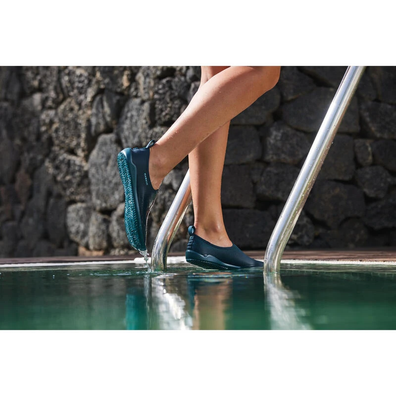 Notre équipe de conception a développé ce chausson en tissu pour la pratique de cours d’Aquagym.Envie de souplesse pour vos pieds pendant les cours d’Aquagym ?
