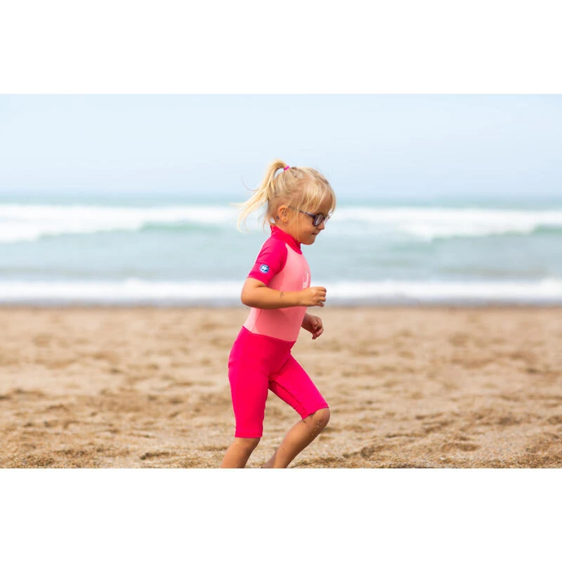 Combinaison De Natation Anti UV Bébé / Enfant Manches Courtes Rose Imprimé
