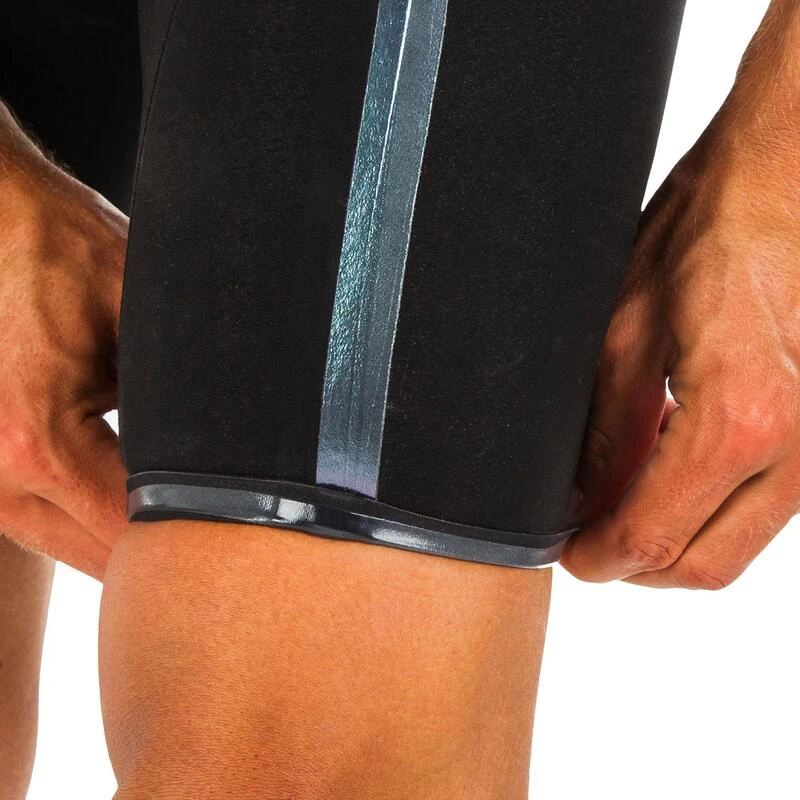 Les bandes antiglisse placées aux extrémités (ceinture et cuisses) évitent au tissu de se plisser. Ceci permet au jammer de rester en place lors des plongeons et virages, de couvrir la plus grande surface de peau tout au long de l’épreuve et de limiter les résistances à l’avancement.