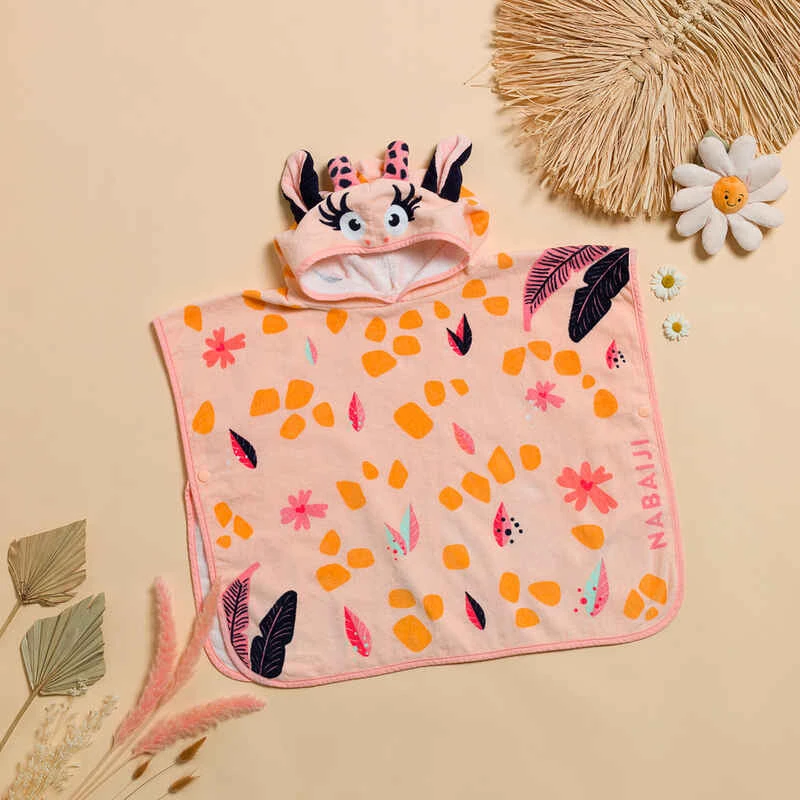 Poncho De Bain Coton Bébé – Girafe Blanc Rose